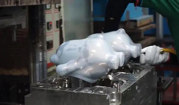 冰墩墩表面外殼最初可選擇用固態和液態兩種設備與生產工藝加工,不過產品比較偏大最終選擇固態模壓成型工藝,這個工藝對產品精密度不高,但是對產品的外觀要求比較苛刻,比較面積較大容易出現吸附灰塵與不良。