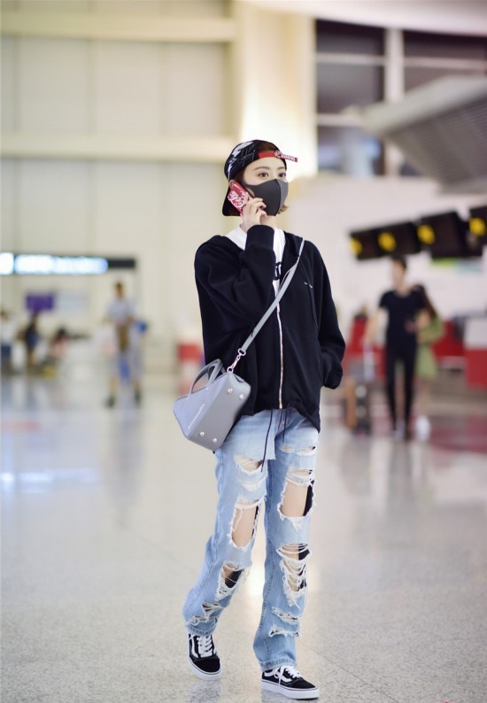 景甜寬松潮裝帥氣現(xiàn)身機(jī)場(chǎng)
